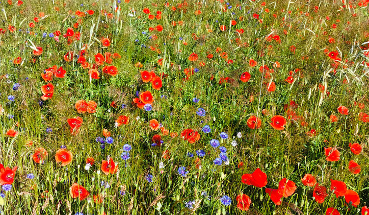 Hell aufgeblüht im Sonnenschein.